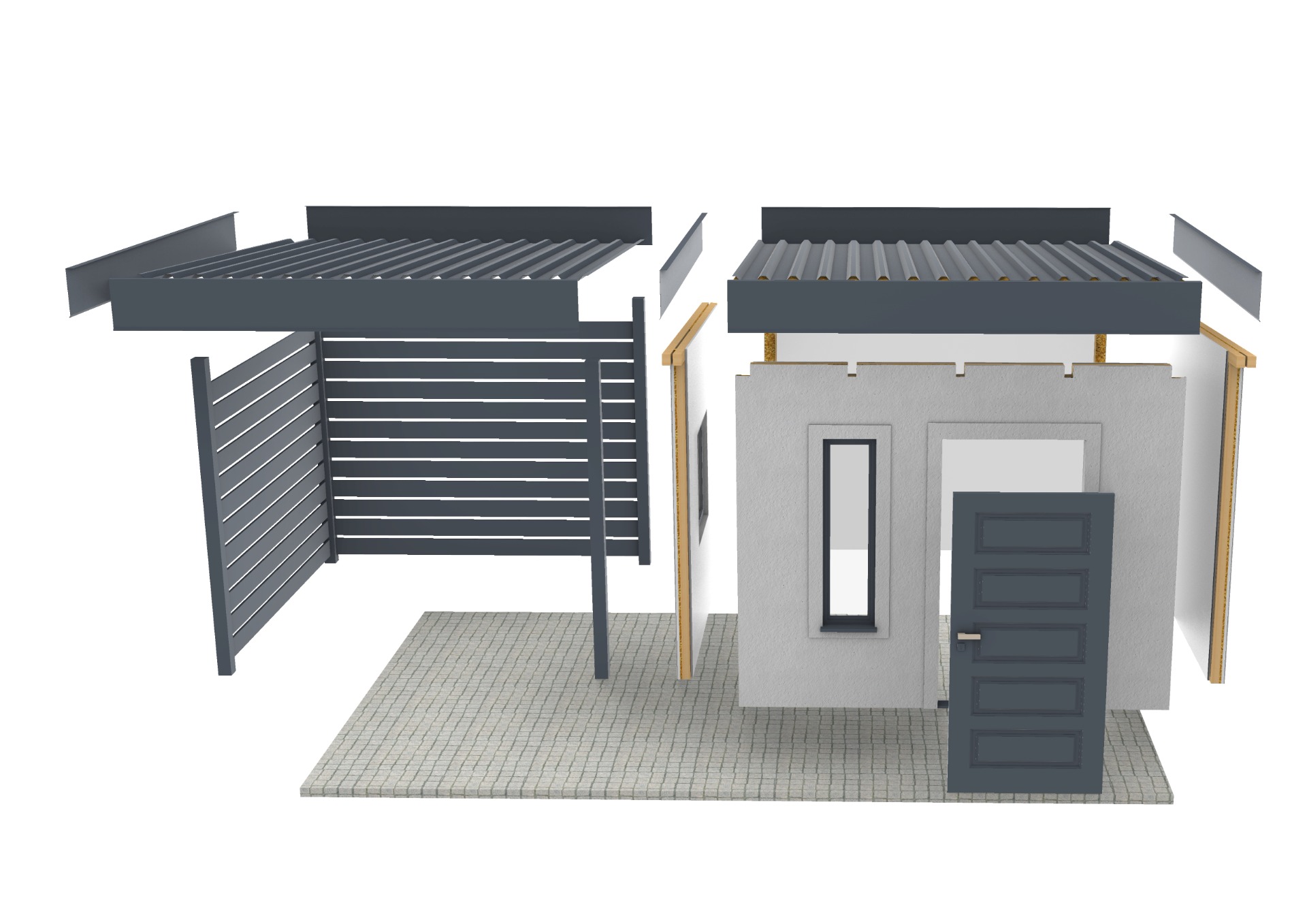 Naše zahradní domky, chatky, Tiny House, pergoly jsou kompletně vyrobené v naší výrobní hale a na staveniště přijedou celé stěny, kde jsou během krátké doby sestaveny k sobě.